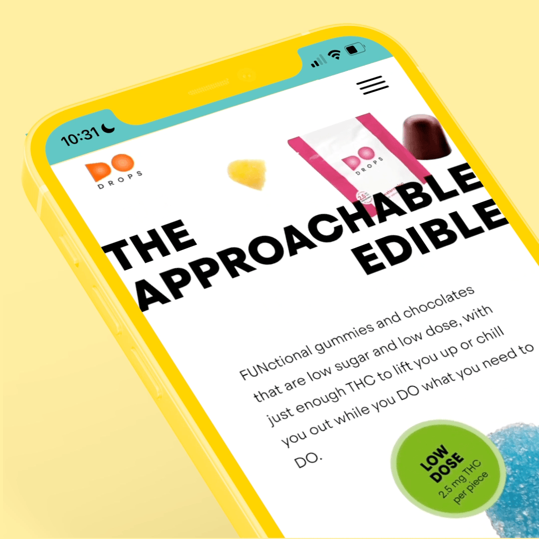 I worked with Holistic Industries from day one, not only on the brand for DO Drops Edibles—the first low-dose edible—but also on product naming, development, product shape, and flavors. The result is what we call 'the approachable edible,' featuring clean design, familiar flavors, and a friendly gumdrop shape. We replaced negative associations with edibles with a sense of trustworthiness and fun.