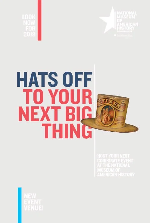 The National Museum of American History came to me for a creative campaign promoting private event rentals, an important source of funding for the Museum. The end result featured elements of the collection with silhouettes complemented with a defining line of copy. The target audience included weddings, corporate planners and more.