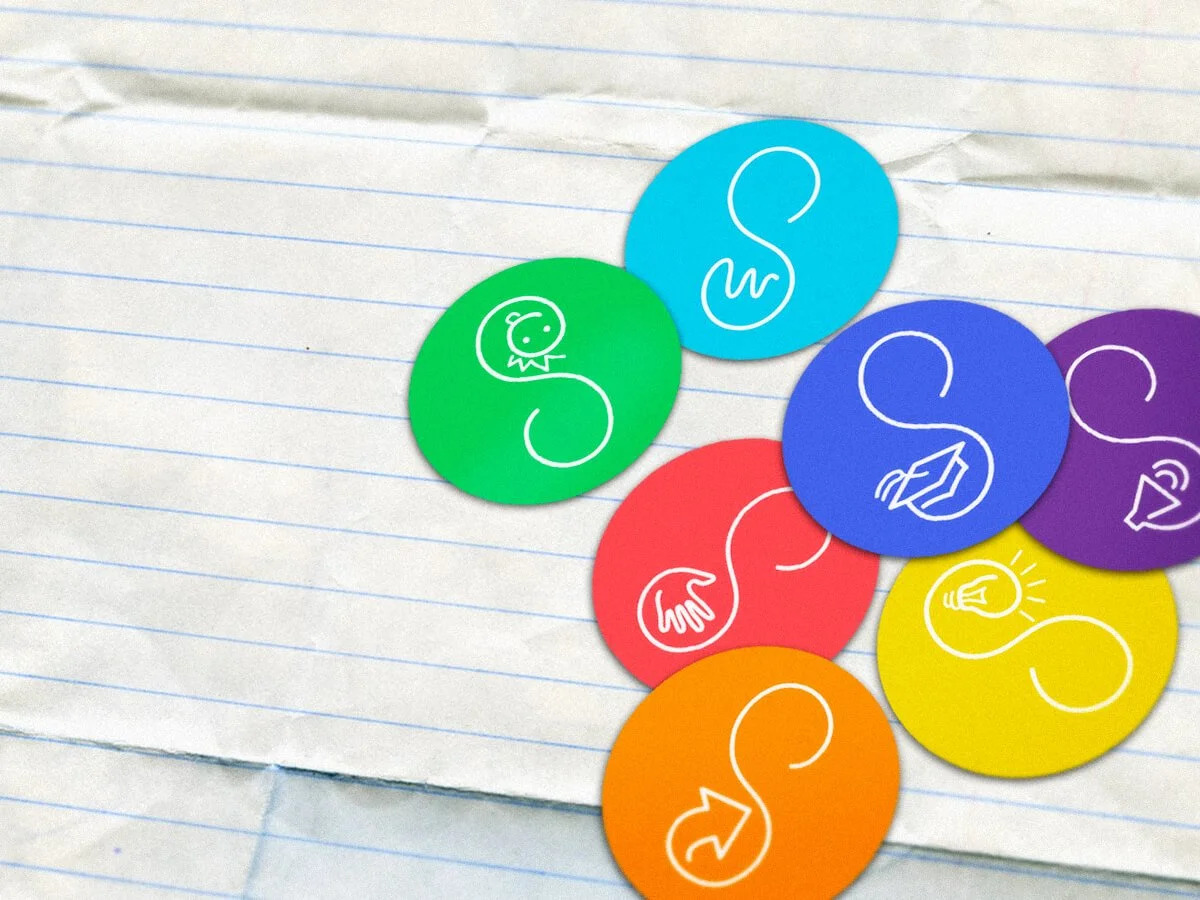 The logo system is centered around an 'S' executed more as a doodle than a traditional letter mark. The squiggly shape captures the spirit of imagination and allows for a flexible logo system. While the parent brand’s 'S' with a 'W' at its base is more abstract, the symbolic icon doodles take their place in the sub-brand lockups.
