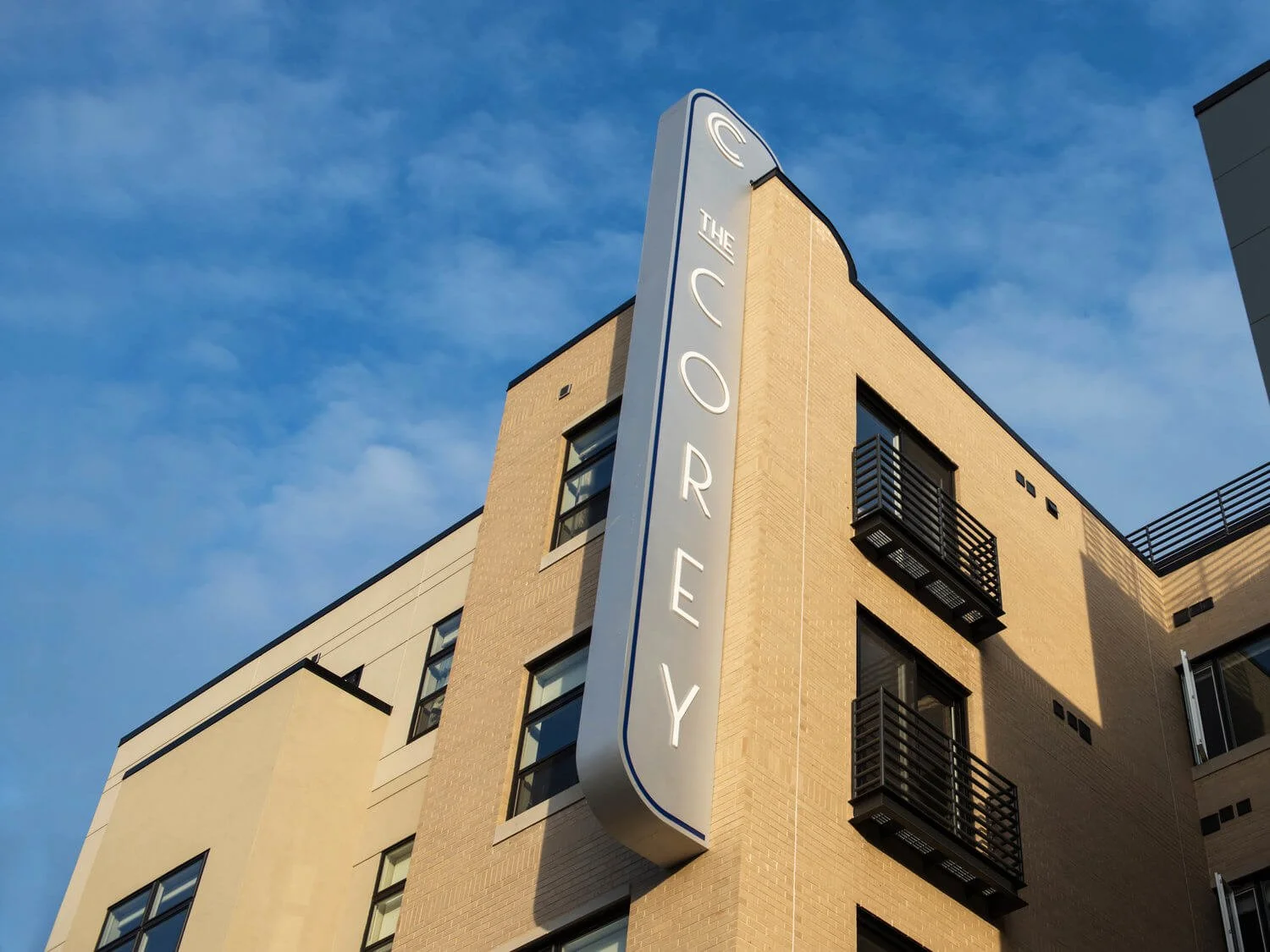 The Corey name draws inspiration from both the building’s architecture – Le Corbusier is the father of Art Deco – and its setting in the H St. Corridor. The custom font is also inspired by Art Deco, but through a modern lens. The underlined H is another subtle nod to its H St location.