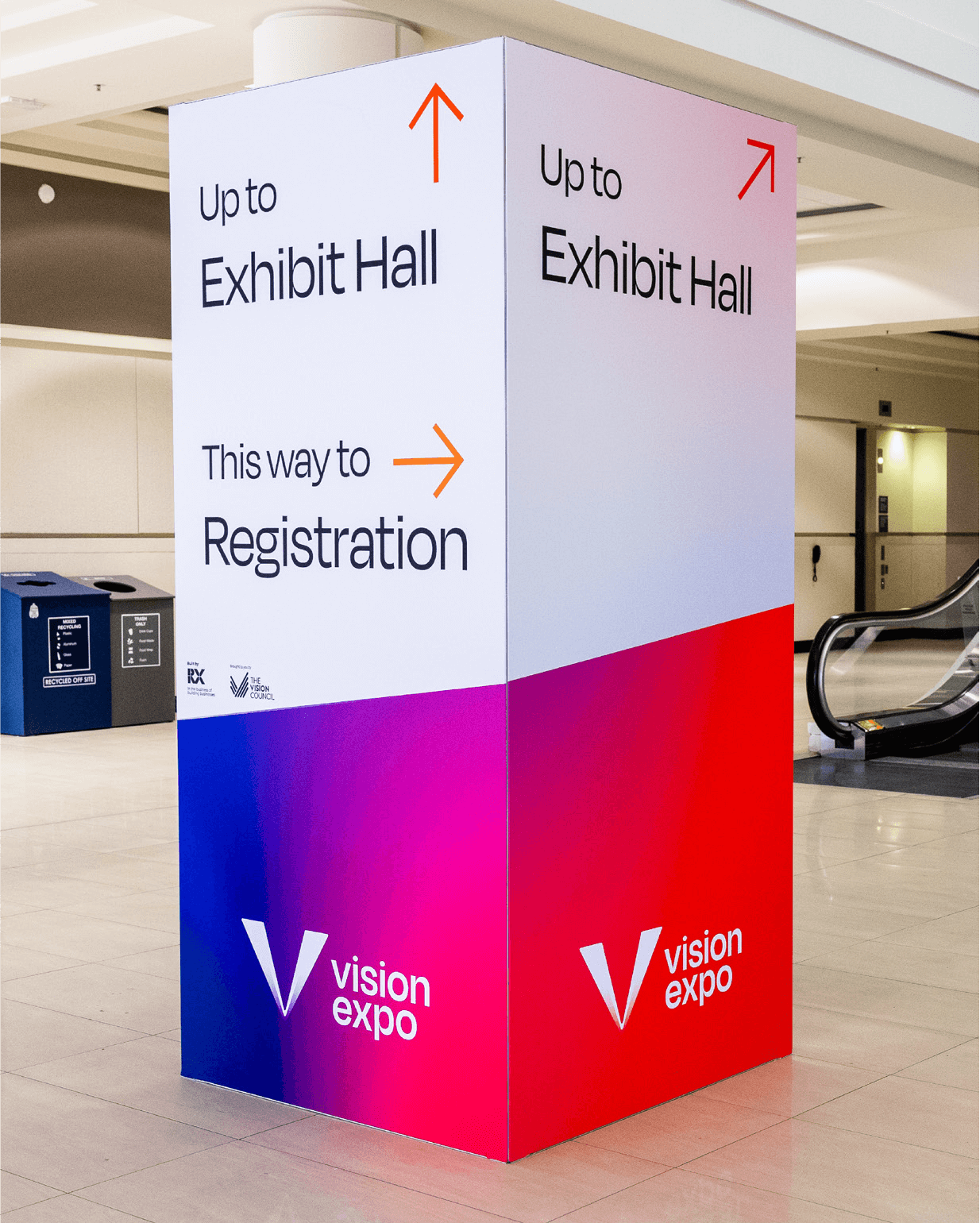 Vision Expo, the top trade show for the optical industry, sought a fresh look to energize its audience with in-person events. I led a brand audit, including stakeholder interviews and competitor analysis, resulting in a bold new visual identity and adaptable messaging system. Inspired by lenses and vision, the design features prismatic distortions and a color palette suited for the grand expo floor, with high-exposure photography and light leak filters adding a unique lens-inspired touch across all brand extensions.